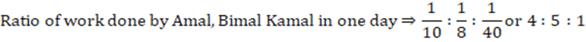 Amal can complete a job in 10 days and Bimal can complete it in 8 days. Amal, Bimal and Kamal together complete the job in 4 days and are paid a total amount of Rs 1000 as remuneration. If this amount is shared by them in proportion to their work, then Kamal’s share, in rupees, is